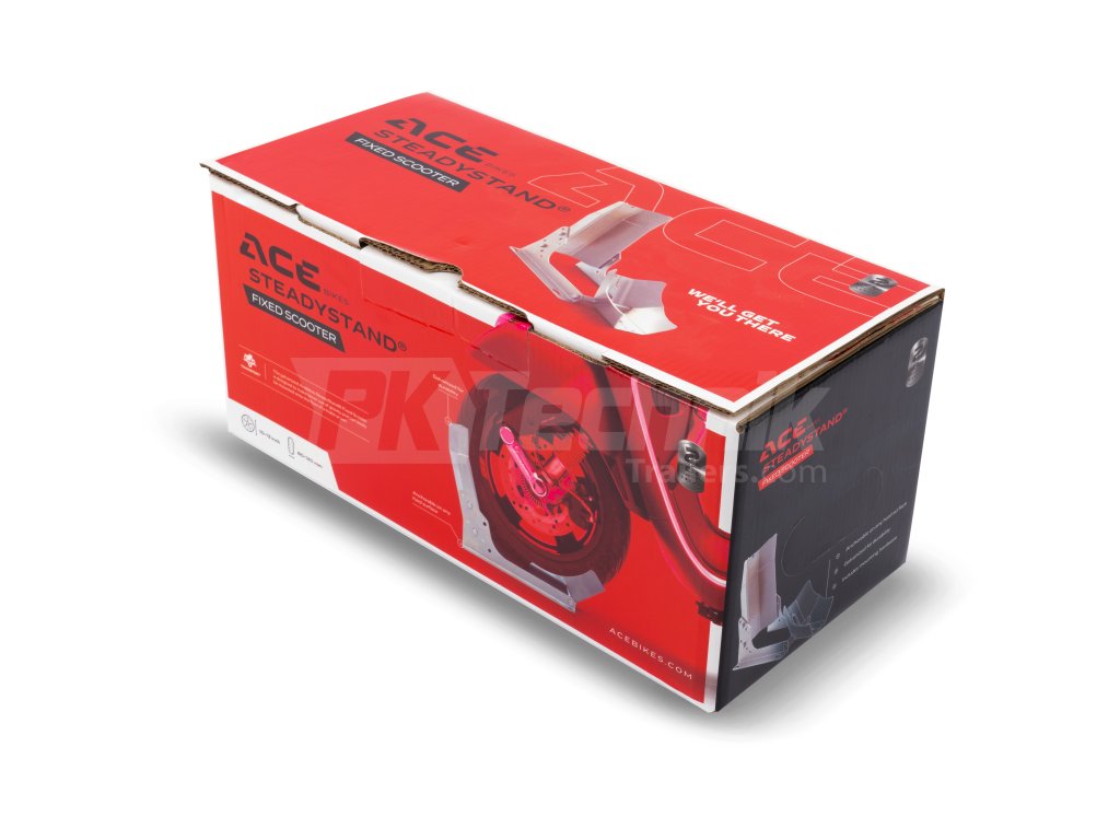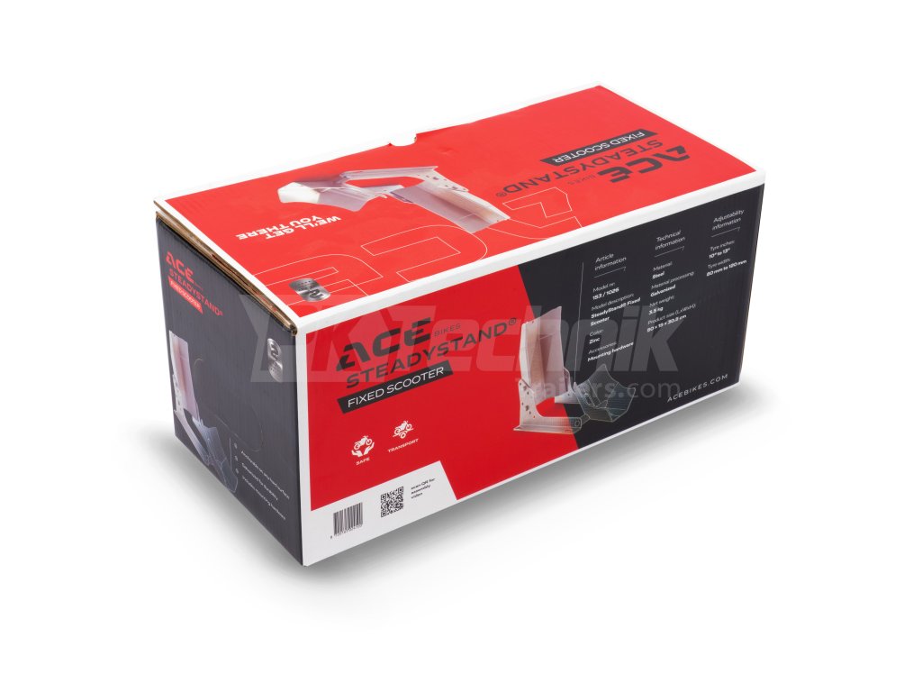 Podpěrný stojan Acebikes SteadyStand Fixed Scooter je ideální volbou pro majitele skútrů, kteří hledají spolehlivé a snadno použitelné řešení pro parkování. Při přepravě vašeho skútru je vhodné použít vázací popruhy pro dodatečné kurtování. Díky tomu si můžete být jisti, že váš skútr zůstane na svém místě a bude chráněn před poškozením.